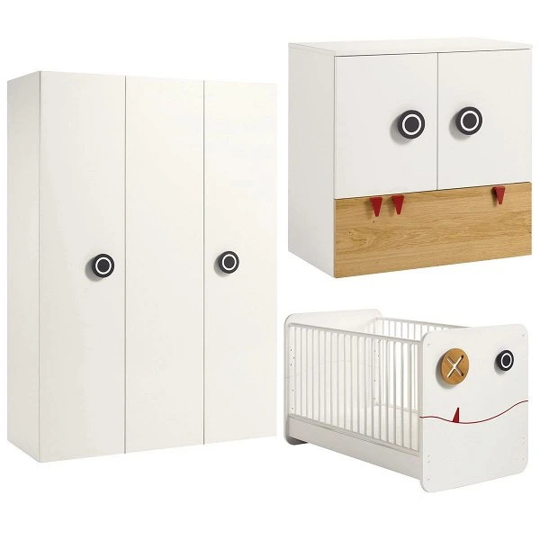 hülsta now! minimo Kinderzimmer in schneeweiß/Natureiche mit 3-türigem Kleiderschrank