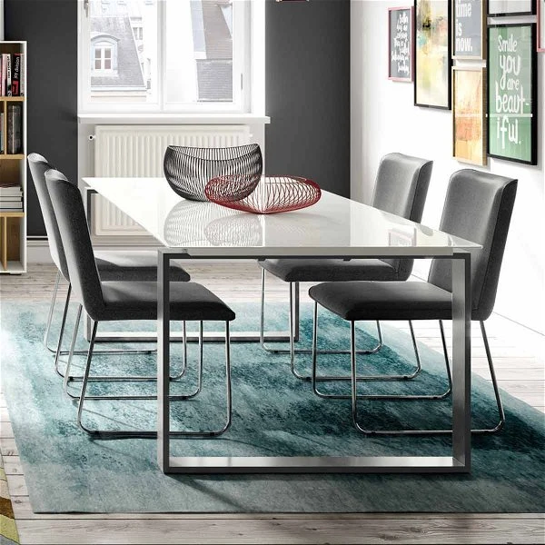 Der now! by hülsta Esstisch ET 19 hat ein Gestell aus Metall oder Edelstahl und eine Tischplatte aus hinterlackiertem Optiwhite-Glas. Den now! by hülsta Esstisch bieten wir Ihnen in unterschiedlichen Ausführungen an, diese können Sie einfach in unserem Produktkonfigurator auswählen.