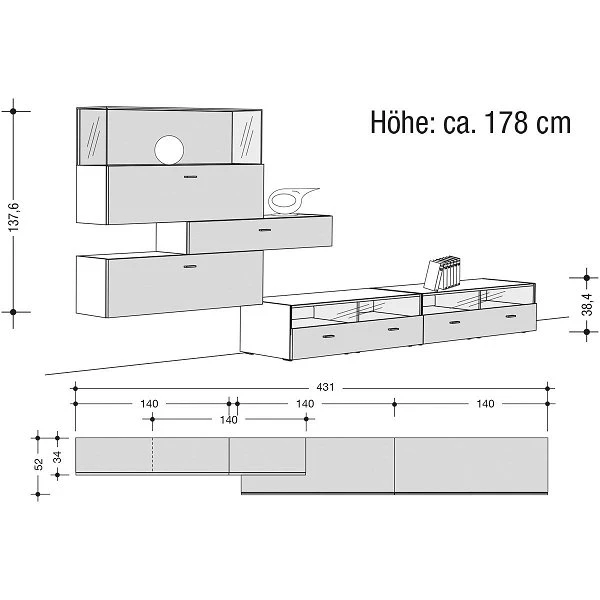 Gesamt: 178 x 431 x 52 cm (H x B x T)
