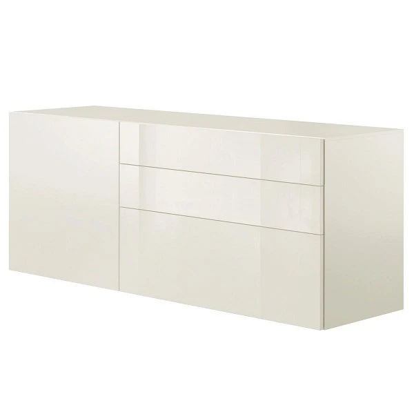 Der Korpus bei diesem Sideboard ist in Lack-weiß gehalten. Die Front ist in Lack-Hochglanz-weiß.