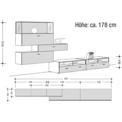Now! No.14 By Hülsta Kombination 12 178x431x52 Kernnussbaum/Lack-seidengrau/Hochglanz-seidengrau